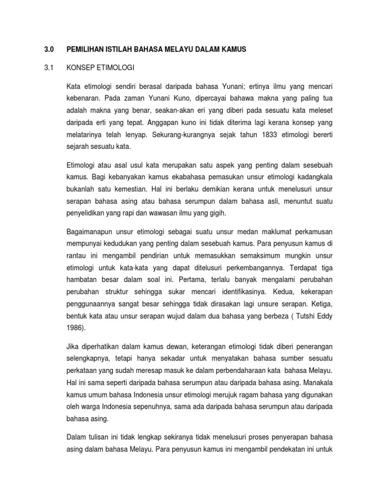 Arti kata etimologi dalam Kamus Besar Bahasa Indonesia KBBI Belakangan ini penggunaaan kata-kata dalam ucapan dan keterangan makin luas dan banyak menggunakan kata-kata yang jarang digunakan. Terminologi lebih ke arah definisi atau definisi istilah. Isrilah Melayu Sejarah dan Pengertian - Historia Vitae Magistra.