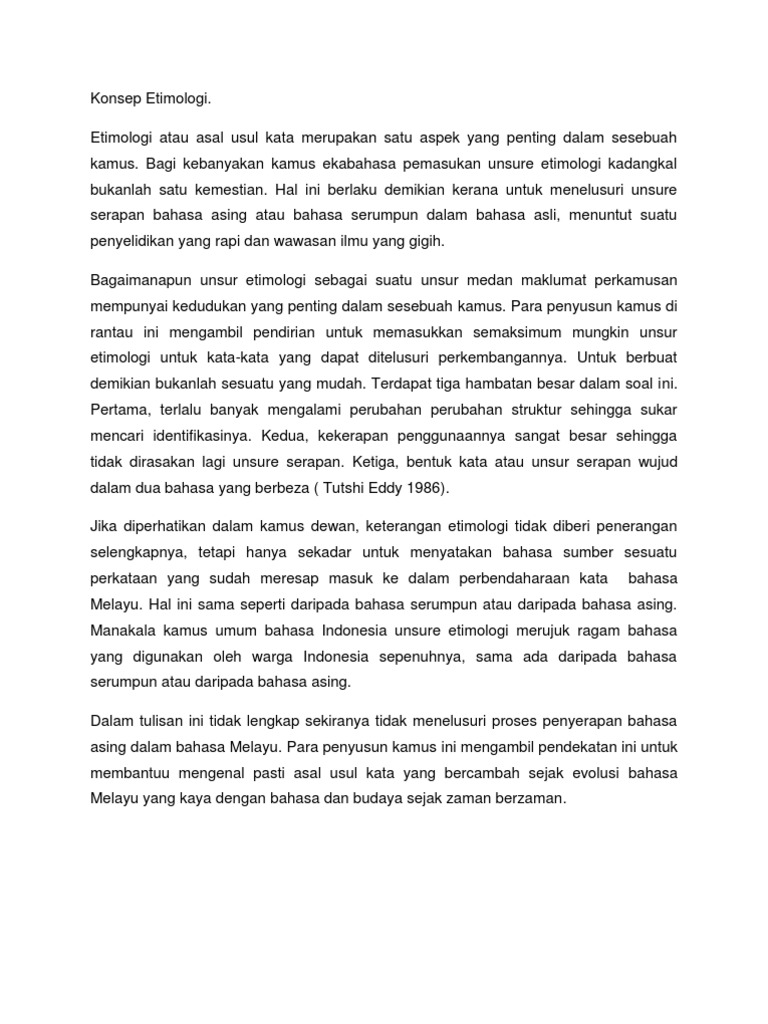 Sebagian besar kamus online menyertakan etimologi kata sebagai sarana untuk. Inilah rangkuman definisi etimologi berdasarkan Kamus Bahasa Indonesia dan berbagai referensi lainnya. Cabang ilmu bahasa yang menyelidiki asal-usul kata serta perubahan dalam bentuk dan makna.